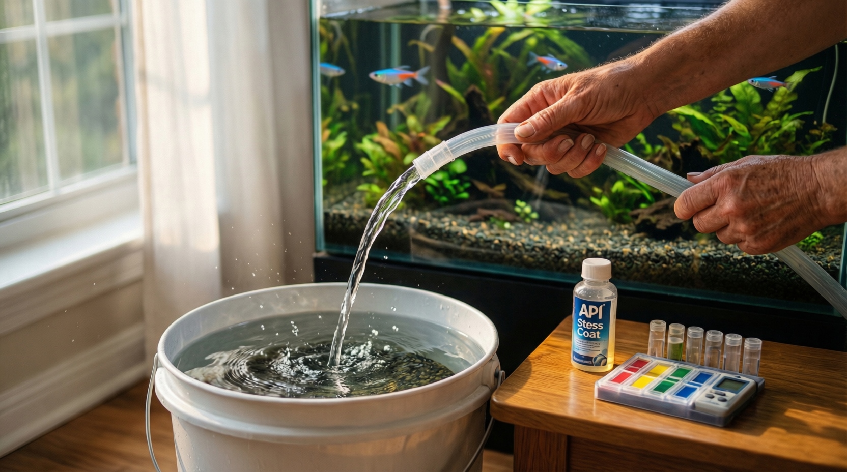 Помните: даже идеально подготовленная вода со временем меняет свои параметры из-за жизнедеятельности обитателей, разложения корма и растительных остатков. Поэтому регулярные частичные подмены воды (10–25% раз в неделю) — обязательная часть ухода за аквариумом.